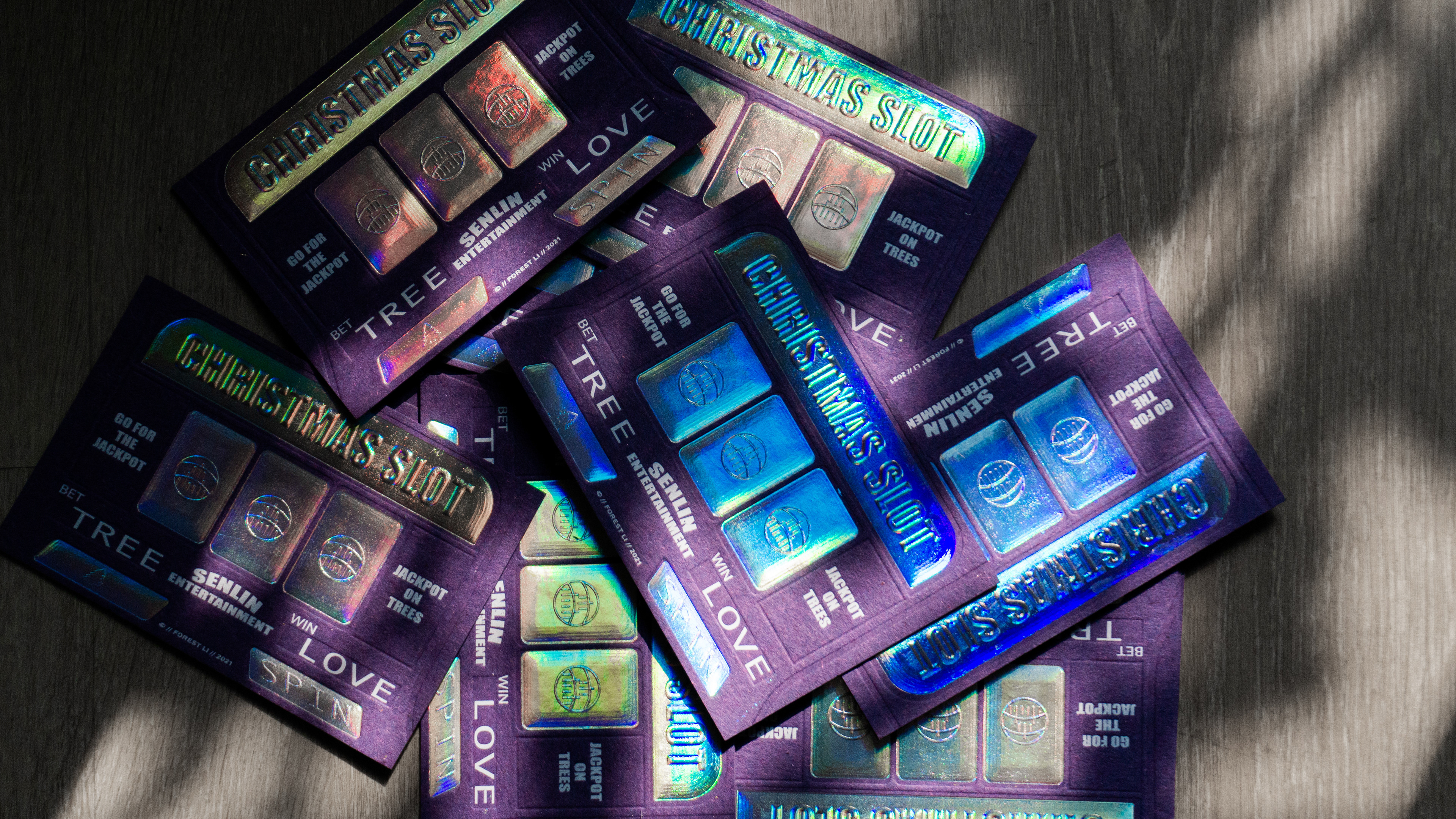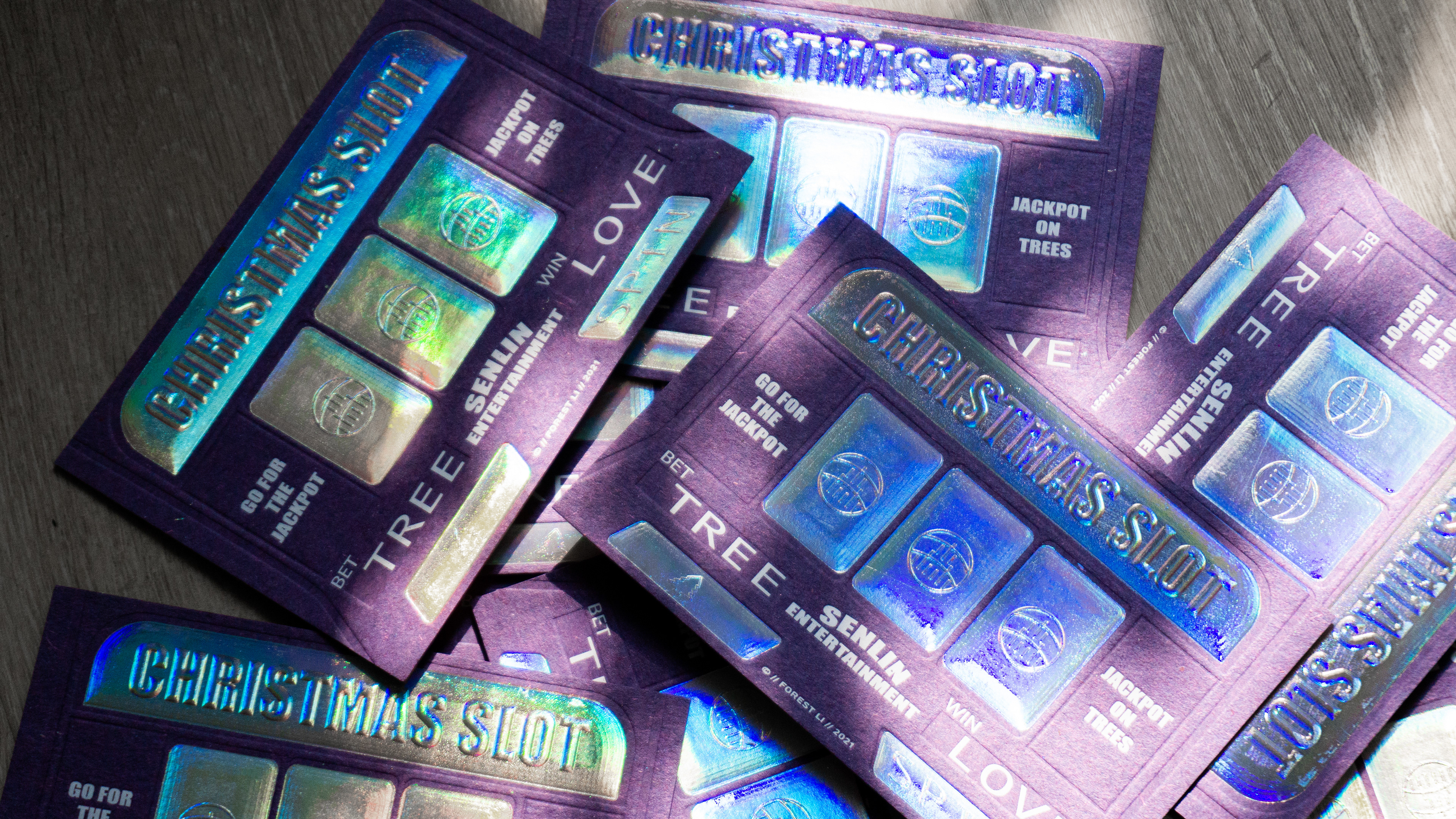 Of all my designs, this one holds a special place in my heart. When I moved to Macau for graduate studies, I was immediately struck by the abundance of slot machines throughout the city. The actual cards used in these machines are much more vibrant and exciting than their illustrated counterparts, a fact that inspired this design. The chromes were added to capture the playful energy of the slot machines and, when placed under natural light, the colors truly come alive. It's a design that never fails to bring a sense of joy and excitement.